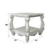 KD, Square End Table • Open Compartment: Bottom Shelf • Wooden Top • Oversized Scrolled Legs & Shelf Apron
