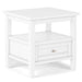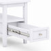 • Features bottom drawer with metal drawer glides and large open shelf for storage