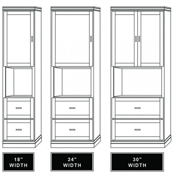 This beautifully crafted Murphy bed side cabinet offers ample hidden storage to complement your vertical Murphy bed. The top door opens to reveal one fully adjustable shelf for versatile storage and display, while the cabinet features an opening for nightstand storage. The bottom section includes two full-extension drawers, providing additional space to keep your essentials organized.