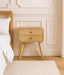 - Curved nightstand - Endlessly versatile, this curved nightstand table makes a perfect stand for nibbles, drinks, or a lamp. It will prove handy all over your home and is made from 100% solid mango wood and has a fine finish. It has curved edges which will fit into any home/living space. It also comes with 2 drawers that come with shiny knobs and 4 Nordic style legs.