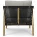 • The fiber filled back cushion and 3.5 inch thick high density foam seat cushion are covered in a water resistant, durable Stone Grey fabric.