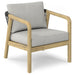 • Chair frame, seat base, arms and legs are constructed from solid acacia wood and handfinished in light teak