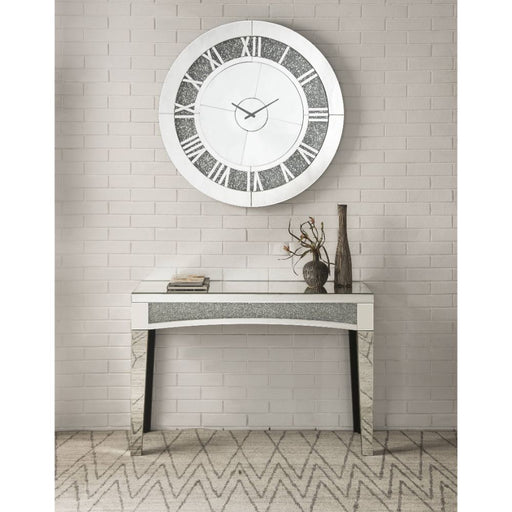 ACMEThis Noralie round wall clock is covered in beveled mirrored panels that highlight its glamorous style. Featuring crushed acrylic faux diamonds tha...