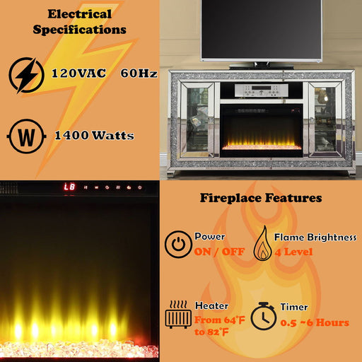 ACMENoralie - TV Stand With Fireplace - Mirrored & Faux DiamondsProduct Features LED Electric Fireplace Beveled Mirrored Frame, Faux Diamonds Inlay...