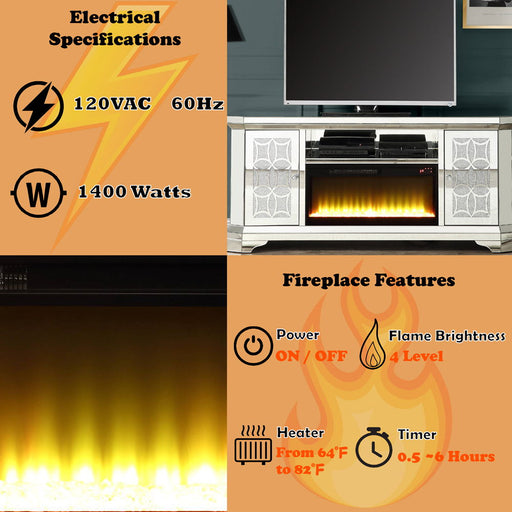 ACMENoralie - 28" TV Stand With Fireplace - Mirrored & Faux DiamondsProduct Features 2 Door Storages Adjustable Temperature Timer Function Remote C...