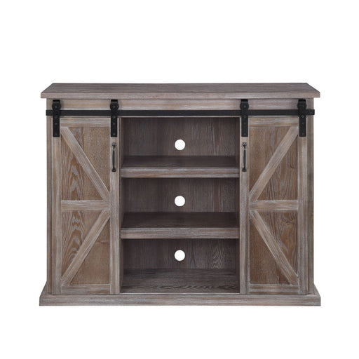 ACMEAmrita - TV Stand With Fireplace - Gray OakProduct Features Rectangular TV Stand and LED Electric Fireplace Storage: 2 Sliding Barn Doors, Open Med...