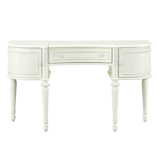 ACMEKD 2/3 Drawer Extension Center Metal Drawer Glide Coleen - Vanity Desk With Mirror & Jewelry Tray - White & Gold42.0"W x 20.0"D x 31.0"H - ...