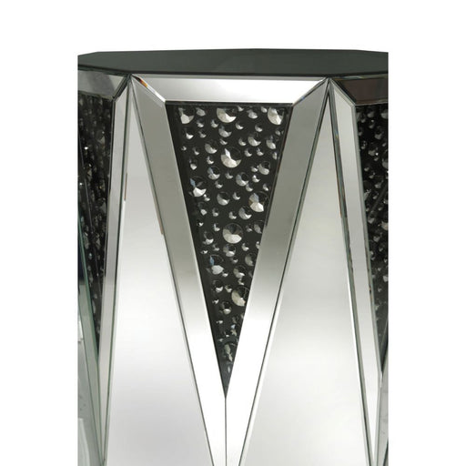ACMENysa - 23" End Table - Mirrored & Faux CrystalsProduct Features Assembled, Round End Table NO Storage Glass Top & Mirrored Finish: Beveled ...