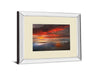 Immerse yourself in the tranquil beauty of a coastal sunset with this captivating framed wall art. The scene captures the sun as it gently dips below the horizon, painting the sky with fiery reds and soft blues that reflect on the calm ocean waters. Encased in a sleek mirrored frame with double cream matting, this piece adds depth and sophistication to any living room, bedroom, or office. Protected by premium real glass, its vibrant colors and intricate details promise lasting elegance and serenity, transforming your space into a peaceful retreat.