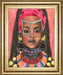 This captivating portrait, titled Ornament Empress II, celebrates the vibrant strength and beauty of its subject through bold colors and intricate details. The woman’s striking pink headwrap and colorful jewelry create a dynamic focal point, set against a warm, inviting background. Encased in an elegant gold frame, this piece adds a touch of sophistication and cultural richness to any living room or personal space, making it a powerful statement of contemporary graphic art.
