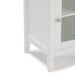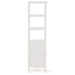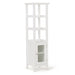 - Features one (1) door with one (1) adjustable interior shelf and three (3) open shelves. Brushed nickel hardware