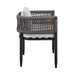 Enjoy a meal with a view with the Alegria Outdoor dining set from Armen Living. The Alegria dining set is a unique piece of outdoor patio furniture and comes with outdoor dining chairs and rectangular outdoor dining table. The modern and clean line silhouette of the outdoor chairs with cushions is complimented by unique woven rope arms. The rope is treated to be protected from water, UV, oil, and fading. The lightweight aluminum chairs and table are easily portable and feature a multi-layer powder coating for further effective protection from the elements and everyday wear and tear. The light cushions not only feature high density foam that will allow for many hours of comfortable seating; the cushions also feature a zipper closure that allows for easy removal and cleaning! Featuring neat proportions, the dining table provides adequate leg room for everyone. The sleek and effortless style of this set makes it the perfect outdoor patio set for outdoor brunches and family dinners whether you have them in your backyard, screened-in porch, garden terrace, patio, or poolside. The durability of this dining set is shown through its high-quality materials and innovative design. The Alegria’s aluminum dining set features a modern finish, light cushions, and rope. The dining chairs have a seat height of 19 inches and can support up to 308lbs per chair.