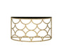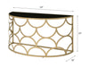 The sleek console table has timeless fashion and eye-catching appeal. It's metal base works perfectly with gold finish, showcasing a striking geometric silhouette in modern style. It features a tempered glass top in half-moon shape that provide elegance and practicality for your space. Accent any setting with this classic occasional piece. Let the Altus Console Table become a stunning centerpiece for your living area.