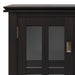 - Features 2 tempered glass doors that open to two adjustable shelves for versatile storage