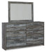 Baystorm - 6 Pc. - Dresser, Mirror, Queen Panel Bed with 2 Storage Drawers - Gray