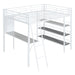 Full Size Loft Bed With 3 Layers Of Shelves And Desk, Stylish Frame Bed - White