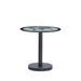 - KD, Round End Table (No Storage) Glass Top: World Map Pattern Metal Stand: Single Metal Tube Round Base: Leather