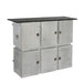 The Brancaster bar table is a handsome statement piece combining the warmth of natural materials with industrial appeal of a marble top. This black marble top bar table is finished with an aluminum frame for exceptional color depth, and features six patchwork aluminum doors. Thoughtfully crafted, this bar table offers a foot rail that encourages guests to linger and relax enjoying your company.