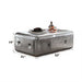 The Brancaster coffee table is the perfect statement piece and goes well with leather upholstery. This rectangular trunk designed aluminum coffee table is designed with a mid-20th century aircraft in mind and features rounded corners, one Felt-Lined drawer with self-closing function and inset drawer pulls giving it sleek aerodynamic lines. This unique table makes heads turn with its riveted aircraft aluminum construction.