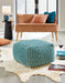 Brynnsen - Pouf - Teal / Ivory