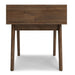 - Features one drawer with cut out drawer pull, side mounted metal drawer glides and four angled legs