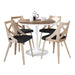 - Comfortable Seating: The dining chairs come with a bent wood x-shaped backrest design and cushioned seats upholstered in fabric for added comfort during meals.