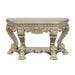 Lavish and grand, the Danae coffee table offers the right amount of wow factor that your living space needs to create a classy home. The antique white and gold finish enhances the ornate carvings on the base and apron of the table. Display books and decor items on the ample tabletop.