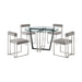 Devi Anastasia - 5 Piece Round Glass Dining Table Set - Brushed Silver / Light Gray