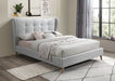 Every element from the wing back styled headboard, light gray upholstery, and button tufting exudes timeless elegance and contemporary comfort. The fully upholstered bed features a distinct and sophisticated headboard designed with wing back and button tufted details. Wooden leg gives a sturdy support but also a cozy vibe to the bed. Fashioned with a chic and elegant look, the Duran Bed will create a relaxing sleeping environment for you after a long day at work.