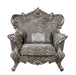 An assortment of materials and patterned hues highlight this elegant, traditional Elozzol collection. Plush and luxurious with rich upholstery, it offers an exquisitely comfortable space to lounge and relax after a long day. This set flaunts a rich, ornate frame in a champagne finish featuring intricate, detail-carved wooden trim and claw feet for a tasteful and timeless look. With its stylish, patterned pillows and thick, plush cushions, this magnificent sofa set gives any living room an opulent and inviting atmosphere. Turn your living room or family room into the relaxed centerpiece of your home with the Elozzol collection.