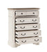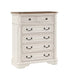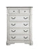 Classic design elements never go out of style the Florian collection is designed for the traditional home. The finish gives off the right amount of distressing for a worn-in feel. The bed features a button-tufted portman-style headboard that is upholstered in a gray PU for added contrast. The footboard features raised panels to add visual interest. Case goods offer a natural wooden finish for contrast against the antique white finish. The drawers are full-extension and offer French dovetail fronts and English dovetail back construction. Comfortable, timeless, and stylish, the bed will bring a strong design presence to a room.