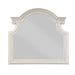 Exquisite craftsmanship adds a sense of charm and class to this well-crafted Florian mirror. The arched top and scalloped side wooden frame encase this mirror from all sides for a sturdy, practical piece, while the antique white finish is a classic shade that highlights this mirror with a fanciful charm. The beveled edge gives it some depth. The dresser is sold separately.