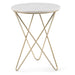 - Features marble reinforced with wood substrate to create a durable long lasting top, gold metal frame and hairpin legs