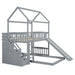 Twin Over Full Bunk Bed With Slide, House Bed With Slide - Gray