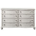 This Jaqueline dresser will help with keeping a tidy bedroom with its six spacious drawers. English dovetail drawer fronts and backs provide strong construction for everyday use. The gorgeous traditional design of this dresser showcases a sturdy wooden construction in a traditional antique white finish and sits on stylish wooden bun legs for extra pizzazz.