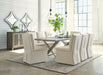 Krystanza - 9 Pc. - Dining Room Table, 8 Oatmeal Side Chairs, Server - Weathered Gray