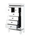 Add some Hollywood glamour to highlight your collection. The Lotus Cabinet is accented by mirrored surfaces, adding depth and shine to room areas. Faux crystals inlay makes it stand out in a luxe-glam style. It offers six felt-lined drawers with safety stop and self closure to keep precious items safe. Alluring in its design and function, this cabinet will be an tasteful addition to your space.