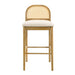 The Lucio Barstool Collection blends refined craftsmanship with relaxed comfort, bringing a touch of modern sophistication to any kitchen or dining setting. Designed with clean lines, natural materials, and subtle detailing, Lucio perfectly captures the balance between mid-century and modern farmhouse design. Its signature feature — a gently curved cane backrest framed in solid natural wood — introduces organic texture, while the plush white boucle performance fabric seat offers inviting softness and long-lasting durability. Available in two timeless finishes — Black for a bold, contemporary look and Amber Glow for a warm, natural tone — the Lucio stool elevates both modern and rustic spaces. The rich grain of the solid natural wood base is sealed with a smooth finish that highlights its natural character without appearing overly rustic. The combination of light boucle upholstery and airy cane detailing gives the stool a cozy yet refined personality, making it a versatile choice for both minimalist and decorative interiors. Comfort is a priority in Lucio’s design. The arched backrest supports the spine gently, while the generously padded seat ensures comfort for extended use. The integrated footrest bars add stability and ergonomic support, allowing users to sit comfortably for long meals or casual gatherings. With its armless and back-framed silhouette, Lucio slides neatly under most counters when not in use, maintaining a clutter-free and open space. Built to last, the Lucio stool features a solid natural wood frame known for its resilience and structural integrity, paired with performance fabric upholstery that resists spills, wear, and fading. Offered in both counter height and bar height, it suits a variety of setups from kitchen islands to entertainment bars. Assembly is straightforward, requiring minimal time and no specialized tools. Backed by a 1-year limited manufacturer warranty, the Lucio collection is as dependable as it is beautiful — a true balance of timeless design and everyday practicality.