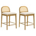 The Lucio Barstool Collection blends refined craftsmanship with relaxed comfort, bringing a touch of modern sophistication to any kitchen or dining setting. Designed with clean lines, natural materials, and subtle detailing, Lucio perfectly captures the balance between mid-century and modern farmhouse design. Its signature feature — a gently curved cane backrest framed in solid natural wood — introduces organic texture, while the plush white boucle performance fabric seat offers inviting softness and long-lasting durability. Available in two timeless finishes — Black for a bold, contemporary look and Amber Glow for a warm, natural tone — the Lucio stool elevates both modern and rustic spaces. The rich grain of the solid natural wood base is sealed with a smooth finish that highlights its natural character without appearing overly rustic. The combination of light boucle upholstery and airy cane detailing gives the stool a cozy yet refined personality, making it a versatile choice for both minimalist and decorative interiors. Comfort is a priority in Lucio’s design. The arched backrest supports the spine gently, while the generously padded seat ensures comfort for extended use. The integrated footrest bars add stability and ergonomic support, allowing users to sit comfortably for long meals or casual gatherings. With its armless and back-framed silhouette, Lucio slides neatly under most counters when not in use, maintaining a clutter-free and open space. Built to last, the Lucio stool features a solid natural wood frame known for its resilience and structural integrity, paired with performance fabric upholstery that resists spills, wear, and fading. Offered in both counter height and bar height, it suits a variety of setups from kitchen islands to entertainment bars. Assembly is straightforward, requiring minimal time and no specialized tools. Backed by a 1-year limited manufacturer warranty, the Lucio collection is as dependable as it is beautiful — a true balance of timeless design and everyday practicality.