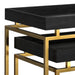 - Set includes: Two (2) Nesting Tables with gold powder coated metal frame and black tray top