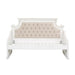 Accent your bedroom with the perfect blend of European Traditional design, using this unique twin daybed. Upholstered in tufted chenille, laced with tones, threading, this bed constructed with poplar solids as well as oak & birch veneers, features an antiqued finish accompanied by heavy chipping. This piece ships with a slat roll pack, preventing buyers from having to purchase a box spring, enhancing user convenience. Enjoy the extra storage or utilize the trundle to accommodate guests. The scrolled cap rail and sloped end panels on each side effortlessly add both definition and character, completing your look.