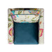 - Vibrant Design: The chair features striking colorblocking with patchwork-inspired upholstery, combining teal-blue, purple velvet, and multicolored floral patterns for a bold and eye-catching look.