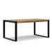 - Leg Design: The table boasts thick, powder-coated iron metal legs in Black, offering both sturdiness and style. The legs have a rectangular shape that overlaps the tabletop ends, providing a modern industrial look.