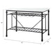 Give off a light and airy feel to a compact cooking space. The Mera Kitchen Island features a artificial stone top paired with a metal slatted shelves, creating a sleek, timeless silhouette that bring your kitchen an open feel. Bottle rack and wine glass storages keep your glassware and collection within reach. Use this stylish yet functional addition to complete your kitchen decor.