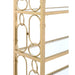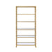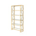 The Milavera open bookcase finished in a trendy gold, and X design on sides. Use this to keep books, picture frames, and other mementos. Features five spacious clear glass shelves for storage and display. This bookcase is perfect fit for any room in your home. Some assembly required.