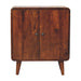 • Mini Classic Chestnut Cabinet - This mini classic cabinet has been constructed from 100% solid mango wood in a chestnut finish and features 2 shelves inside for storage space, as well as shiny knobs on the doors, and nordic style legs. Make full use of this cute cabinet in the living room or bedroom. This product is part of the Recession Collection.