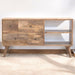 - Oak-ish Multi Drawer Media Unit - This solid timber media unit is expertly constructed from 100% solid mango wood, with a smooth oak-ish finish. A simple design to suit most homes, featuring carefully handcrafted joints, wooden runners and knobs to each drawer. Useful storage space is available with 4 drawers and 2 shelves, this media unit also features 4 Nordic wood style legs.