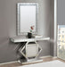 The Nowles mirrored console table demonstrates sophisticated, graceful, elegant style with its unique design. While elegantly reflecting its surroundings, this console table combines glamour with modernism. Light is captured and reflected from all angle of this art deco style table creating brightness and the illusion of space. The rectangular console is mirrored on both sides making it suitable for use in the center of a room as well as against a wall, making it a stunning entryway console table or occasional table behind a couch in the living room.