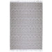 - Detailed with a geometric pattern in ivory and taupe featuring a hand-knotted fringe