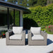 • Complete 2-Piece Set: Includes 2 outdoor lounge armchairs with cushions.